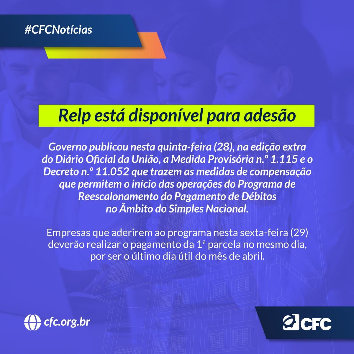A Receita Federal liberou, nesta sexta-feira (29), o início das adesões ao Programa de Reescalonamento do Pagamento de Débitos no Âmbito do Simples Nacional (Relp). A ação aconteceu após a Presidência da República publicar a Medida Provisória n.º 1.115 e o Decreto n.º 11.052 que trazem as medidas de compensação que permitem o início das […]