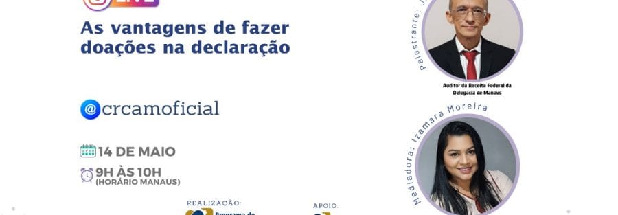 A iniciativa tem como objetivo esclarecer e orientar a melhor forma de fazer a doação e destacar as vantagens dessa ação. A live sera mediada pela contadora, empresária e secretária do PVCC, Izamara Moreira, como palestrante o auditor da Receita Federal da Delegacia de Manaus, Jansen de Lima Brito.