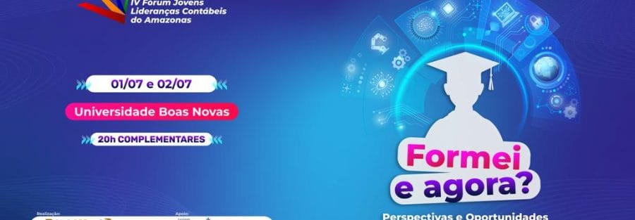 Perspectivas e Oportunidades no Mercado de Trabalho será o tema abordado no IV Fórum Jovens Lideranças Contábeis do Amazonas, que será realizado nos dias 01 e 02 de Julho, no auditório Ana Lúcia Câmara,da Universidade Boas Novas, localizado na Av. Rodrigo Otávio, bairro Japiim, Zona Sul de Manaus.
