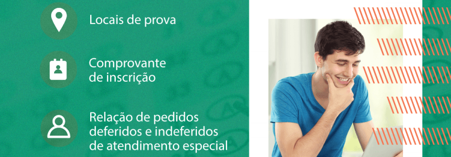 Os comprovantes de inscrição também já estão disponíveis. Segundo o edital, esses documentos devem ser apresentados no dia e no local das provas.