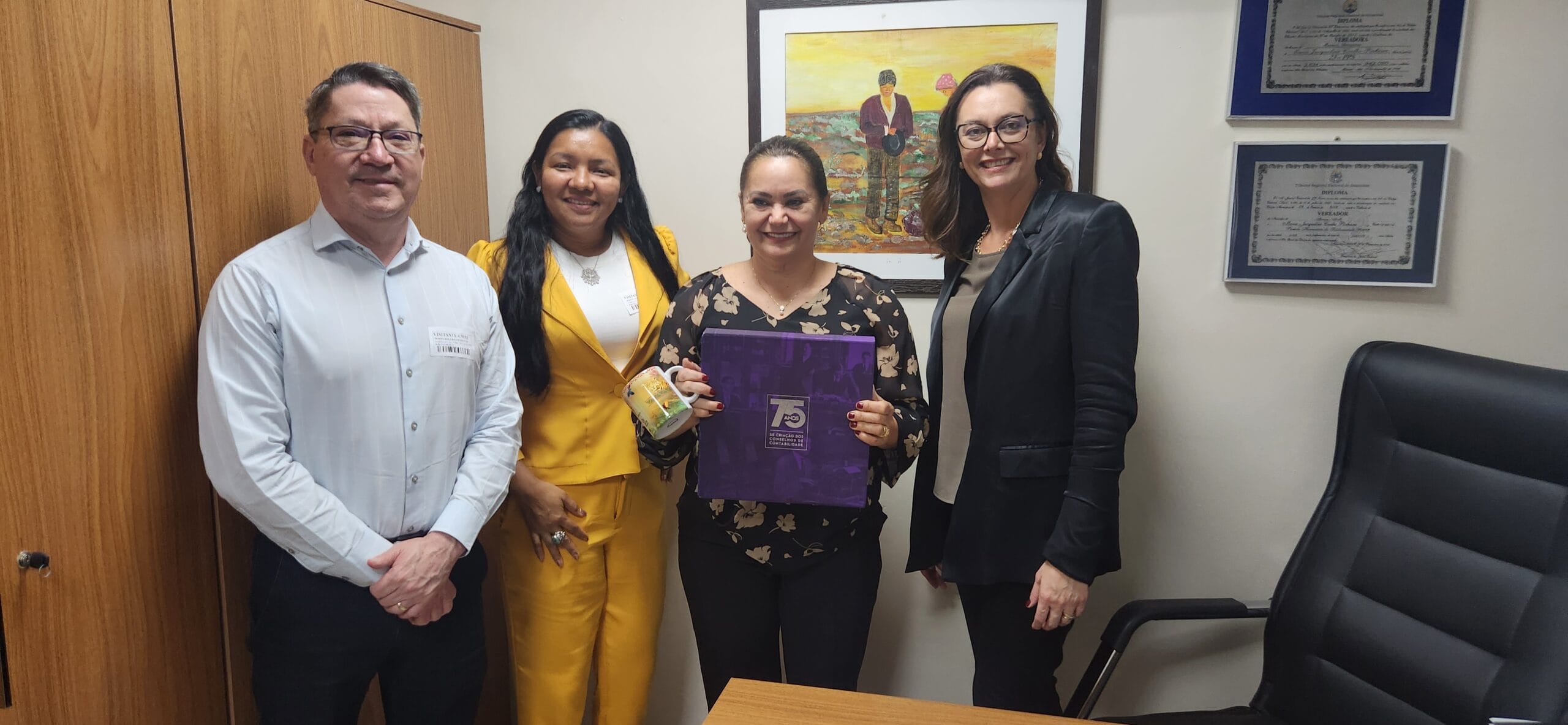 O Conselho Regional de Contabilidade do Amazonas (CRCAM) representado pela presidente Joseny Gusmão, juntamente com diretora Executiva do Conselho Federal de Contabilidade (CFC) Elys Tevania Alves e o diretor Executivo do Conselho Regional de Contabilidade de Minas Gerais -(CRCMG),Mário Rogério Marotta, participaram nesta quarta-feira 28/06, de uma reunião com a vereadora Professora Jacqueline, na sede da Câmara Municipal de Manaus (CMM).